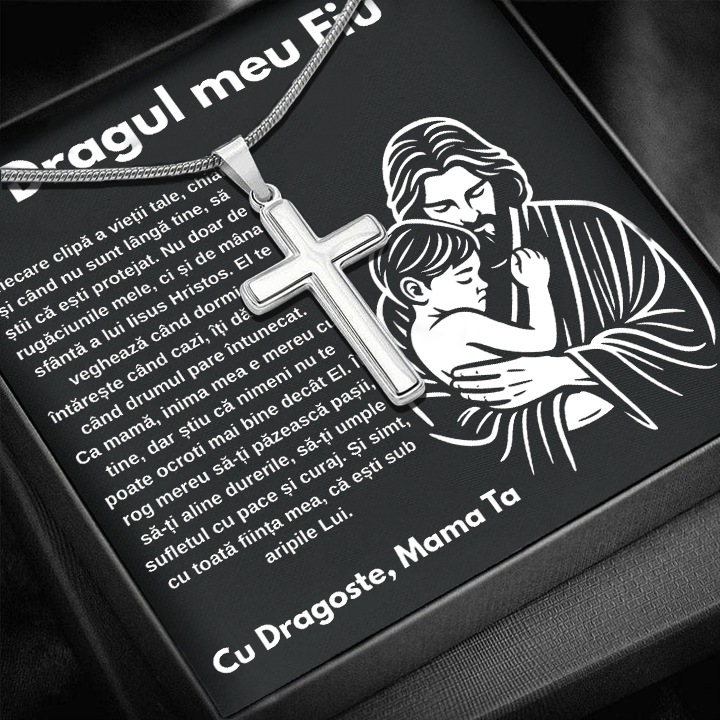 Cadou Fiu - Lantisor cu Cruce si mesaj de Dragoste Faith