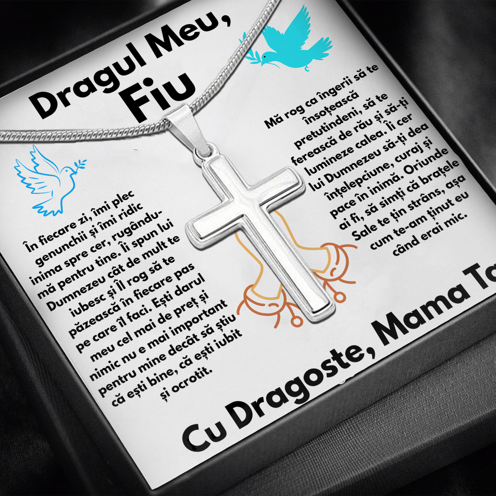 Cadou Fiu - Lantisor cu Cruce si mesaj de Dragoste Faith